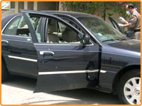 میرے شوہر نے اس گاڑی کی طرف اشارہ کیا جس میں ایک بھارتی شخص کو حفاظتی افواج نے ایک شدت پسند سمجھ کر تب گولی مار دی جب وہ ایک پولیس گاڑی کو اورٹیک کرنے کی کوشش کر رہا تھا۔