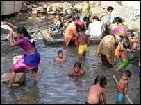 گٹر کے پانی میں لوگ کپڑا دھوتے ہیں