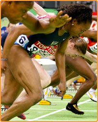 اس ریس میں امریکہ ہی کی میرئیون جونز نے پہلی پوزیشن حاصل کرکے سونے کا تمغہ حاصل کیا تھا نہ کہ گیل ڈیورز نے جبکہ کانسی کا تمغہ ایک یونانی ایتھلیٹ ایکا ترینی تھاناؤ نے حاصل کیا تھا۔ یہ تصاویر اسی ریس سے لی گئی ہیں۔ اس کے لیے کم سے کم الفاظ میں عنوان تجویز کیجئے۔