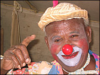 منہ پر عجیب و غریب پینٹ اور پلاسٹک کی سرخ موٹی سی ناک لگائے بچوں کو ہنسا رہا ہے‘