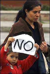 |  سپین میں دہشت گردی کے خلاف ایک مظاہرے میں شامل ماں اور بچہ۔ |