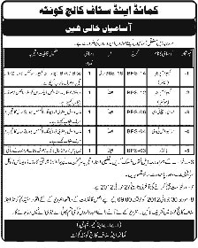 اسامیاں پُر کرنے کے بارے میں کمانڈ اینڈ سٹاف کالج نے قومی اخبارات میں ایک اشتہار شائع کیا تھا جس میں کمپیوٹر آپریٹر (سینئر)، کمپیوٹر آپریٹر (جونیئر)، ڈرائیور ایچ ٹی وی، ڈرائیور ایل ٹی وی، اور بائنڈر کی نچلی سطح کی ایک ایک اسامی کے لیے گزشتہ ماہ درخواستیں طلب کی گئی تھیں۔