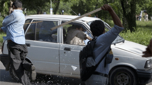 اسی طرح پاکستان کے انگریزی اخبار ایکسپریس ٹریبیون پر شائع ہونے والی ایک تصویر بہت گردش میں ہے جس میں ایک کار پر چند طلبا ڈنڈوں سے حملہ کر رہے ہیں۔