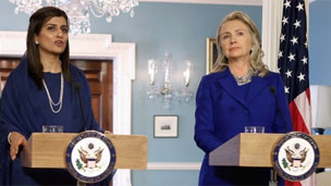 جمعہ کی شب واشنگٹن میں پاکستانی وزیرِ خارجہ سے ملاقات سے قبل صحافیوں سے بات چیت میں ہلیری کلنٹن نے کہا کہ ’میں حکومتِ پاکستان کا ان کوششوں کے لیے شکریہ ادا کرنا چاہتی ہوں جو انہوں نے اسلام آباد میں ہمارے سفارتخانے اور لاہور، پشاور اور کراچی میں قونصل خانوں کے تحفظ کے لیے کیں‘۔