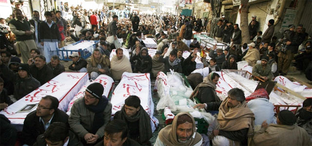 پاکستان کے صوبہ بلوچستان کے دارالحکومت کوئٹہ میں جمعرات کو سنوکر کلب پر ہونے والے بم حملوں میں شیعہ افراد کی ہلاکت پر ہزارہ برادری کا احتجاج ہفتے کو بھی جاری ہے اور تدفین نہیں کی گئی ہے۔
