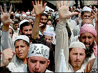 آج پاکستان بھر میں مذہبی جماعتوں کے اتحاد متحدہ مجلس عمل کی اپیل پر حکومت کی طرف سے کالعدم مذہبی تنظیموں کے خلاف کریک ڈاؤن اور مدارس پر چھاپوں کے خلاف احتجاجی مظاہرے ہوئے۔ تاہم کسی بھی شہر میں ان مظاہروں میں لوگوں کی بڑی تعداد دیکھنے میں نہیں آئی۔ وفاقی دارالحکومت اسلام آباد میں آبپارہ چوک پر مظاہرہ ہوا جس میں شریک افراد نے صدر جنرل پرویز مشرف، برطانوی وزیر اعظم ٹونی بلیئر اور امریکی صدر جارج بش کے خلاف نعرے لگائے۔ مظاہرے میں مقررین نے صدر جنرل پرویز مشرف کی سرکاری ٹیلیوژن پر تقریر کو تنقید کا نشانہ بنایا اور الزام لگایا کہ وہ امریکی اور برطانوی دباؤ کے تحت ملک میں مذہبی جماعتوں کے خلاف کاروائیاں کر رہے ہیں۔ اسلام آباد کے علاوہ لاہور،کراچی اور کوئٹہ سے بھی مظاہروں کی اطلاعات ملی ہیں جن میں لوگوں کی تعداد چند سو سے زیادہ نہیں بتائی جا رہی۔ آج مساجد میں جمعے کے خطبات اور مظاہروں میں زیادہ ذکر حکومت کے اس اعلان کا رہا جس کے مطابق تمام مدارس کو اس سال دسمبر تک رجسٹر کیا جائے گا۔مقررین نے مدارس پر حکومتی دباؤ کو مسترد کرنے کا اعلان کرتے ہوئے کہا ہے کہ وہ حکومت کی طرف سے مدارس پر کسی قسم کا دباؤ برداشت نہیں کریں گے۔ ان مظاہروں میں زیادہ تعداد متحدہ مجلس عمل کے کارکنان یا مدارس کے طالبعلموں کی رہی اور کہیں بھی عام افراد نے ان مظاہروں میں شرکت نہیں کی۔ |