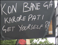 مظاہرہ میں شہر کے علاوہ دیہی خواتین کی بھی ایک بڑی تعدا موجود تھی جس میں انہوں نے سیاہ پلے کارڈ اٹھائے ہوئے تھے جن پر جنرل مشرف کے خلاف سخت الفاظ میں نعرے تحریر تھے۔ ایک پلی کارڈ پر کون بنے گا کروڑ پتی تحریر تھا۔