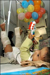 | | | آٹھ اکتوبر کے زلزلے میں عمر کی دونوں ٹانگیں ٹوٹ گئیں۔ اب وہ لاہور میں زیرِ علاج ہے۔ |