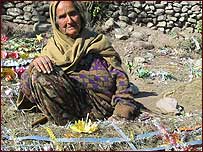 پینسٹھ سالہ خانم جان بھی قریب میں اپنے پوتے کی قبر کے قریب نڈہال بیٹھی نظر آئیں۔ ان کا کہنا تھا کہ قبر پر وہ اور کچھ نہیں اللہ کو ہی یاد کرتی ہیں۔