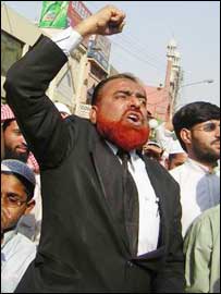 سندھ اسمبلی میں جمعہ کے روز ایم کیو ایم کی جانب سے یورپی اخبارات میں توہین رسالت پر مذمتی قرار داد پیش کی گئی جس کو ایوان نے اتفاق رائے سے منظور کرلیا۔ ایم ایم اے کے رکن اسمبلی حمیداللہ خان نے اجلاس میں خطاب کرتے ہوئے کہا کہ وفاقی حکومت ڈنمارک، ناروے اور فرانس سے احتجاج کرے اور انہیں کہا جائے کہ وہ امت سے معافی مانگیں کیونکہ یہ پوری مسلم دنیا کی غیرت کا معاملہ ہے۔ کراچی میں جامع بنوریہ کے سامنے جمعہ کی نماز کے بعد ایم ایم اے کی جانب سے احتجاجی مظاہرہ کیا گیا۔ مظاہرین نے ہاتھوں میں بینر تھامے ہوئے تھے جن پر توہین رسالت پر مشرف کی خاموشی کوشرمناک قرار دیا گیا تھا۔ مظاہرین حکومت اور امریکہ کے خلاف سخت نعرے بازی کر رہے تھے۔ مظاہرین سے خطاب کرتے ہوئے ایم ایم اے کے معراج الھدیٰ ممبرصوبائی اسمبلی نصراللہ شجیح، یونس بارائی، حمیدا للہ خان ایڈووکیٹ،حافظ تقی اور علامہ حسن ترابی نے کہا کہ کوئی بھی مسلمان پیغمبرِ اسلام کی توہین برداشت نہیں کرسکتا ہے۔ انہوں نے کہا کہ پاکستان اور دنیا میں عشق مصطفیٰ اور روشن خیالی میں مقابلہ ہے اور جس میں جیت عشق مصطفیٰ کی ہوگی۔ ان کا کہنا تھا کہ پاکستان حکومت توہین رسالت پر خاموش ہے مگر غیور مسلمان بیدار ہیں اور توہین رسالت کے مرتکب کو کیفر کردار تک پہنچایا جائے گا۔ مذہبی اتحاد کے رہنماوں کا کہنا تھا کہ حماس کی کامیابی نے ثابت کردیا ہے کہ جہاد اور شہادت کا راستہ ہی کامیابی کا راستہ ہے۔ان کا مطالبہ تھا کہ پاکستان کی خارجہ پالیسی کا محور پیغمبر اسلام کی شخصیت کو بنایا جائے۔ جے یو پی کے رہنما حافظ تقی کا کہنا تھا کہ ہم کراچی میں ڈ نمارک اور دیگر یورپی ممالک کے سفارتخانوں کا گھیراؤ کریں گے دوسری صورت میں وہ ممالک معافی مانگیں۔ |