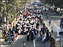 مقررین نے ان کارٹونوں کی اشاعت کا بدلہ لینے کی بات کی۔ جماعت الدعوۃ کے امیر حافظ محمد سعید نے کہا کہ انہوں نے یہ خاکے خود دیکھے ہیں۔ انہوں نے حاضرین کو ان کارٹونوں کی تفصیل بتائی جس سے حاضرین کے غصے میں اضافہ ہوا اور نعرے بازی ہوئی۔ حافظ محمد سعید نے ان کارٹونوں کو مذہبی دہشت گردی قرار دیا ان بقول اس صلیبی دہشت گردی کا آغاز ڈنمارک، ناروے، سوئٹزر لینڈ اور فرانس سے ہوا یعنی ان کے بقول یورپ نے مسلمانوں کے خلاف ایک نیا محاذ کھڑا کیا ہے۔ انہوں نے امت مسلمہ سے متحد ہونے کی اپیل کی اور کہا کہ ’مسلمانوں کو جہاد سے روکنے اور ڈرانے کے لیے نفرت کا ماحول پیدا کیا جارہا ہے لیکن ان کے بقول اس سے جہاد کا راستے کھلا ہے‘۔ انہوں نے پاکستان کی تمام مذہبی اور سیاسی جماعتوں سے اپیل کی کہ وہ کارٹونوں کے معاملےمیں متحد ہوجائیں اور شہر شہر اس کے خلاف احتجاج کریں۔ لاہور کے علاوہ ملک کے مختلف حصوں میں یوم یک جہتی کشمیر کے سلسلے میں جلسے سیمنار اور دیگر تقریبات ہوئیں جن میں کشمیریوں سے اظہار یک جہتی کیا گیا۔ | اسی بارے میں بیروت: ڈنمارک کاسفارتخانہ نذرآتش05 February, 2006 | آس پاس ’شام کی حکومت نے کوتاہی برتی ہے‘05 February, 2006 | آس پاس رابرٹ فسک اور کارٹون کا تنازع 05 February, 2006 | قلم اور کالم تنازعہ شدید تر، سفارتخانے نذر آتش04 February, 2006 | آس پاس کارٹون تنازعہ: اردن کے مدیر گرفتار04 February, 2006 | آس پاس اپنے مسائل خود مل بیٹھ کر حل کیجئے04 February, 2006 | قلم اور کالم کیا معاملہ واقعی آزادیِ اظہار کا ہے؟04 February, 2006 | قلم اور کالم کارٹونوں کے معاملے پر تحمل کی اپیل04 February, 2006 | صفحۂ اول | ||||||||||||||||||||||||||||||||||||||||