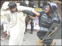 شہر کے دوسرے حصوں میں جماعت اسلامی اور اس کی نوجوانوں کی تنظیم شباب ملی کے کارکنوں نے جتھوں کی صورت میں مختلف مقامات پر مظاہرہ کرنے کی کوشش کی جہاں ان کی پولیس سے جھڑپیں ہوئیں۔ مال روڈ پر جماعت اسلامی کے کارکن ایک قریبی گلی سے نکل کر مسجد شہدا کی طرف بڑھے۔ ادھر راولپنڈی میں جب قائد حزب اختلاف اور مجلس عمل کے رہنما مولانا فضل الرحمان لاہور کی ریلی میں شرکت کرنے کے لیے گیارہ بجے کے قریب ایئرپورٹ پہنچے تو انہیں بھی پولیس اپنے ساتھ پکڑ کر لے گئی تھی اور تین گھنٹے انہیں حراست میں رکھا۔ پولیس اور رینجرز نے ہفتہ اور اتوار کی نصف شب سے پورے لاہور شہر میں جگہ جگہ ناکے لگا کر شان مصطفیٰ ریلی کے اعلان کردہ راستے کو جانے والی تمام سڑکیں ٹریفک کے لیے بند کردی تھیں۔ لاہور کے بیشتر علاقوں میں سارا دن ایک علانیہ کرفیو کا سماں رہا جہاں عام لوگوں کی آمدورفت بند کردی گئی تھی۔ صبح ہی سے پورے شہر میں گلے میں بندوق لٹکائے ایلیٹ پولیس اور رینجرز کے جوان شہر کی بڑی سڑکوں اور چوکوں پر تعینات تھے اور انہوں نے جگہ جگہ ناکے لگائے ہوئے تھے۔شہر سے ملتان جانے والی شاہراہِ پاکستان کو، جس کے راستے میں جماعت اسلامی کامرکز منصورہ ہے، ٹریفک کے لیےبند کردیا گیا تھا۔ راوی پل، سگیاں پل اور کاہنہ میں بھی پولیس کے ناکے لگے ہوئے تھے۔ جماعت کے مرکز منصورہ کو چاروں طرف سے پولیس اور رینجرز نے گھیرے میں لے لیا تھا اوراس کے اندر اور باہر جانے کے راستے بند کردیے تھے۔ پنجاب یونیورسٹی، بڑے دینی مدرسوں جیسے جماعت الدعوۃ کے مرکز قادسیہ اور دیگر کالجوں جیسے سائنس کالج اوراسلامیہ کالج سول لائنز وغیرہ کے باہر بھی پولیس نے ناکے لگائے ہوئے تھے۔ جماعت الدعوۃ کے سربراہ حافظ سعید کو اتوار کی صبح ان کے گھر میں نظر بند کر دیا گیا تھا۔ لاہور میں آنے والے تمام سڑک کے راستوں، ریلوے سٹیشنوں اور ایرپورٹ پر پولیس کا کڑا پہرہ رہا۔ پیر کے روز احتجاج کے اعلان کے بعد امکان ہے کہ لاہور میں پولیس اور رینجرز کی بھاری نفری تعینات رہے گی۔ شہر میں چودہ فروری کے واقعات کے بعد سے دس ہزار سے زیادہ پولیس اور تقریبا دو ہزار رینجرز کے جوان سڑکوں اور اہم سرکاری اور غیرملکی بینکوں کی عمارتوں کے باہر پہرہ دے رہے ہیں۔ | اسی بارے میں لاہور کی ناکہ بندی، کرفیو کا سماں26 February, 2006 | پاکستان لاہور کی ناکہ بندی، کئی رہنما گرفتار26 February, 2006 | پاکستان لاہور میں احتجاجی مظاہرے کی تیاریاں26 February, 2006 | پاکستان پاکستان میں کارٹون احتجاج جاری24 February, 2006 | پاکستان موگادیشو سے مظفر آباد تک24 February, 2006 | پاکستان | ||||||||||||||||||||||||||||||||||||||||