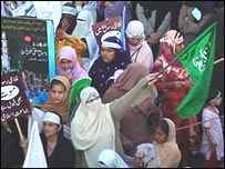 مقررین نے پاکستانی حکومت پر بھی سخت ترین تنقید کرتے ہوئے کہا کہ حکمران نہ صرف مغرب کے اور امریکی آلۂ کار بنے ہوئے ہیں بلکہ امریکیوں کی خوشنودی کے لیئے بےگناہ پاکستانیوں کے خون سے بھی ہولی کھیل رہے ہیں۔ ریلی میں امریکی صدر بش کے دورۂ جنوبی ایشیا اور پاکستان پر بھی کڑی تنقید کی گئی اور پاکستان کے مفادات کی حفاظت میں ناکامی پر جنرل مشرف کی فوجی حکومت پر بھی نکتہ چینی کی گئی۔ جمعیت العلمائے اسلام کے رکن قومی اسمبلی حافظ حسین احمد کا کہنا تھا کہ جنرل مشرف کو کارگل میں عسکری شکست ہوئی تھی اور صدر بش کے دورۂ جنوبی ایشیا میں بھارت اور پاکستان کے درمیان روا رکھے گئے سلوک سے ان کو سیاسی کارگل کا سامنا کرنا پڑا ہے۔ ریلی سے قبل صبح سے ہی ریلی کی گزرگاہ ایم اے جناح روڈ پر خصوصاً اور شہر کے دوسرے علاقوں میں سخت حفاظتی اقدامات کیے گئے تھے اور بڑی تعداد میں پولیس اور رینجرز کے اہلکار موجود تھے۔ ہفتے وار تعطیل ہونے کے باعث شہر کے اہم کاروباری مرکز صدر ، ریگل چوک اور اردگرد میں کاروبار بند تھا جبکہ ریلی کے راستے کے تمام پٹرول پمپوں کو بھی شامیانے لگاکر بند کیا گیا تھا۔ سنیما گھروں پر آویزواں فلمی پوسٹر ہٹا دیئے گئے تھے جب کہ چھتوں پر پولیس اہلکار موجود تھے۔ | اسی بارے میں کارٹون احتجاج: ہڑتال، ٹرانسپورٹ بند03 March, 2006 | پاکستان کارٹون: سکول کے طلباء کا احتجاج28 February, 2006 | پاکستان اپوزیشن تین مارچ کو ہڑتال کرے گی27 February, 2006 | پاکستان سندھ: حکومت اور اپوزیشن کا احتجاج27 February, 2006 | پاکستان لاہور کی ناکہ بندی، رہنما گرفتار26 February, 2006 | پاکستان قاضی حسین احمد پھر نظر بند 24 February, 2006 | پاکستان پاکستان میں کارٹون احتجاج جاری24 February, 2006 | پاکستان | ||||||||||||||||||||||||||||||||||||||||