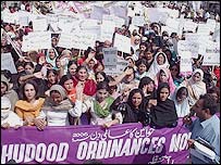 خواتین کے عالمی دن کے موقع پر’حدود آرڈینینس‘ کی منسوخی کے مطالبہ دہراتے ہوئے ملتان میں ایک بہت بڑا جلوس نکالا گیا جس کی قیادت مختار مائی نے کی۔ جلوس میں کئی ایسی خواتین بھی شامل تھیں جو مبینہ طور پر جنسی زیادتی کا نشانہ بننے کے بعد حصولِ انصاف کی جدوجہد میں سرگرداں ہیں۔ ریلی کا انعقاد پتن ترقیاتی تنظیم، ساؤتھ پنجاب این جی اوز فورم اور خواتین کونسلرز نیٹ ورک نے مشترکہ طور پر کیا تھا۔ریلی کے شرکاء ملتان سپورٹس گراونڈ سے مارچ کرتے ہوئے کلمہ چوک تک آئے۔جلوس میں شامل لوگوں نے مختلف بینرز اور پلے کارڈز اٹھا رکھے تھے جن پر حدود قوانین کو کالے قوانین سے تعبیر کرتے ہوئے ان کی فوری منسوخی کے مطالبات درج تھے۔ ریلی کے منتظمین کے مطابق جلوس میں پاکستان کے تین صوبوں پنجاب، سندھ اور سرحد کے تیس کے قریب اضلاع سے خواتین نے شرکت کی۔سپورٹس گراونڈ سے کلمہ چوک تک پہنچنے کے دوران خواتین وقفے وقفے سے رک کر سماجی مساوات اور مردوں کے برابر حقوق کے حصول کے حق میں زور دار نعرے بازی بھی کرتیں۔ ریلی کے شرکاء میں مقبول نعرے تھے ’جاگی جاگی عورت جاگی‘۔ ’ظلم کے ضابطے ہم نہیں مانتے‘ اور ’کالے قوانین واپس لو‘۔