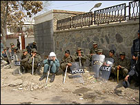 کابل میں پاکستانی سفارت خانے کے باہر ان اطلاعات کے بعد سکیورٹی بڑھا دی گئی ہے کہ سفارتخانے پر ممکنہ حملہ ہو سکتا ہے۔ افغان دارالحکومت کابل میں واقع پاکستانی سفارت خانے کے باہر ایک سو کے قریب پولیس اہلکار تعینات کر دیئے گئے ہیں اور حکام کے مطابق سکیورٹی انتظامات میں اضافہ کر دیا گیا ہے۔ ایک پاکستانی سفارت کار نے بی بی سی کو بتایا کہ انہیں یہ اطلاع ملی تھی کہ کچھ لوگ سفارت خانے پر حملہ کرنا چاہتے ہیں۔ پاکستان اور افغانستان کے تعلقات کچھ عرصے سے دباؤ میں ہیں۔ اتوار کو سابق افغان صدر صبغت اللہ مجددی نے الزام لگایا تھا کہ کابل میں ان پر ہونے والے خود کش حملے میں پاکستان ملوث ہے۔ اس حملے میں وہ بال بال بچ گئے تھے۔ پاکستان اور افغانستان نے حالیہ دنوں میں انٹیلی جینس کے حوالے سے ایک دوسرے کے خلاف الزام عائد کیئے ہیں اور کہا ہے کہ شدت پسند ان کے علاقوں میں حملے کر رہے ہیں۔ کابل میں بی بی سی کے نامہ نگار بلال سروری نے بتایا ہے کہ کابل میں پاکستانی سفارت خانے کے باہر سکیورٹی میں واضح اضافہ نظر آ رہا ہے۔ ایک مقامی پولیس اہلکار کا کہنا ہے: ’ہمیں بتایا گیا ہے کہ یہاں ایک مظاہرے کا امکان ہے اور ہم یہاں اس لیئے آئے ہیں کہ سفارتخانے پر حملہ نہ ہو۔‘ گزشہ دنوں جب امریکی صدر جارج بش نے افغانستان اور پاکستان کا دورہ کیا تھا تو سکیورٹی کا مسئلہ بات چیت کے ایجنڈے پر سرِفہرست تھا۔ پاکستان اور افغانستان کے تعلقات اس وقت سے زیادہ کشیدہ ہوگئے ہیں جب سے صدر حامد کرزئی نے اپنے پاکستانی ہم منصب پرویز مشرف کو ان شدت پسندوں کی ایک فہرست دی تھی جو افغان صدر کے بقول پاکستان میں چھپے ہوئے ہیں۔ پاکستانی صدر کا کہنا ہے کہ یہ فہرست پرانی ہے اور اس کا مقصد پاکستان کو بدنام کرنا ہے۔ | اسی بارے میں کابل میں سفارت خانہ بند08.07.2003 | صفحۂ اول سفارتخانے پر حملہ، مزید چار گرفتار17.07.2003 | صفحۂ اول کابل سفارتخانہ آج کھلےگا20.07.2003 | صفحۂ اول | ||||||||||||||||||||||||||||||||||||||||