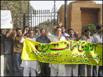 کراچی سے بی بی سی کے نامہ نگار ریاض سہیل کے مطابق کراچی میں بھی صحافیوں کی جانب سے پریس کلب سے گورنر ہاؤس تک ریلی نکالی گئی،جس کی رہنمائی پاکستان یونین آف جرنلسٹ اور کراچی یونین آف جنرلسٹ کے رہنما مظہر عباس، ایوب جان سرہندی کر رہے تھے۔ جنہوں نے حیات اللہ کی بازیابی کا مطالبہ کیا اور گورنر سندھ کو ایک یادداشت پیش کی۔ | اسی بارے میں پشاور:صحافی کی بازیابی کیلیےمظاہرہ18 February, 2006 | پاکستان باجوڑ:صحافیوں کے داخلے پر پابندی17 January, 2006 | پاکستان مغوی صحافی کی بازیابی کے لیےمظاہرہ23 December, 2005 | پاکستان پشاور: ’صحافیوں کوتحفظ دیں‘20 December, 2005 | پاکستان پشاور:صحافی کی بازیابی کیلیےمظاہرہ17 December, 2005 | پاکستان بی بی سی صحافی کےگھرکےباہردھماکہ 16 December, 2005 | پاکستان صحافیوں پر فوج کی نئی پابندی12 December, 2005 | پاکستان صحافی کی گمشدگی کامعمہ11 December, 2005 | پاکستان | ||||||||||||||||||||||||||||||||||||||||