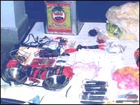 ملتان پولیس نے منگل کے روز دعویٰ کیا ہے کہ اس نے شدت پسند کالعدم تنظیم لشکر جھنگوی سے تعلق رکھنے والے چھ مبینہ خودکش بمباروں کو حراست میں لے کر ان سے بھاری مقدار میں اسلحہ اور بارود برآمد کر لیا ہے۔ حکام دعویٰ کر رہے ہیں کہ گرفتار افراد میں رحیم یار خان سے تعلق رکھنے والے جنوبی پنجاب میں لشکر جھنگوی کے سربراہ ناصر عرف کاشف بھی شامل ہیں جن کے سر کی قیمت حکومت نے پانچ لاکھ روپے مقرر کر رکھی تھی۔ پولیس کی طرف سے جاری کردہ ایک پریس ریلیز کے مطابق کاشف کے ساتھ گرفتار ہونے والے پانچ دیگر افراد کا تعلق مظفر گڑھ سے ہے۔ ان کے نام محمد ریاض عرف بخاری، قاری محمد اکمل عرف مولوی بھبھک، قاری محمد اسلم عرف طارق، محمد جمیل عرف چوہدری اور قاری حفظ الرحمنٰ زید بتائے گئے ہیں۔ پریس ریلیز کے مطابق گرفتار افراد نے دہشت گردی کی باقاعدہ تربیت حاصل کر رکھی ہے اور تباہ کن بارود کے ساتھ ڈیٹونیٹر لگا کر بم تیار کرنے کے ماہر بتائے جاتے ہیں۔ حکام کے مطابق کاشف نے ابتدائی تفتیش میں بتایا ہے کہ وہ جنوبی پنجاب میں لشکر جھنگوی کے ’خود کش سکواڈ‘ کا امیرہیں اور کراچی کی امام بارگاہ مدینتہ العلم میں ہونے والے خودکش حملے میں ملوث ہیں۔ پولیس نے مزید دعویٰ کیا ہے کہ ملزمان ملتان میں ہونے والے ’رشید آباد بم دھماکے‘ کا بدلہ لینے کی تیاری کر رہے تھے۔ یاد رہے کہ اکتوبر دو ہزار چار میں رشید آباد کالونی میں سپاہِ صحابہ کے رہنما مولانا اعظم طارق کی پہلی برسی کے موقع پر ایک بڑا بم دھماکہ ہوا تھا جس میں تقریباً چالیس افراد لوگ ہلاک ہوگئے تھے۔اس واقعہ میں ملوث ہونے کے شبہ میں گرفتار کیئے گئے تمام افراد کا تعلق شیعہ فرقے سے تھا۔ پریس ریلیز کے ساتھ ملزموں سے برآمد ہونے والے اسلحہ اور گولہ و بارود کی تصاویر بھی جاری کی گئی ہیں۔ کچھ روز قبل رحیم یار خان پولیس نے بھی لشکر جھنگوی سے تعلق رکھنے والے پانچ مبینہ دہشت گردوں کی گرفتاری کا اعلان کیا تھا۔ | اسی بارے میں ’لشکرِ جھنگوی کا اہم رکن گرفتار‘01 June, 2006 | پاکستان لشکرِ جھنگوی کے3 شدت پسندگرفتار 04 January, 2006 | پاکستان لشکرِ جھنگوی کے آصف چھوٹوگرفتار28 September, 2005 | پاکستان کراچی حملہ: لشکرِ جھنگوی پر الزام31 May, 2005 | پاکستان ’لشکرجھنگوی کے ارکان‘ ریمانڈ پر13 May, 2005 | پاکستان لشکر جھنگوی، دو کارکن گرفتار04 January, 2005 | پاکستان ’لشکر جھنگوی کے ارکان گرفتار‘13 December, 2004 | پاکستان | ||||||||||||||||||||||||||||||||||||||||