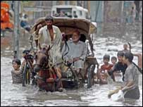 صوبہ سرحد کے جنوبی ضلع کرک میں ایک برساتی نالے میں اچانک پانی زیادہ ہوجانے سے چالیس کے قریب افراد بہہ گئے ہیں جن میں سے سات افراد کی لاشیں نکالی جاچکی ہے۔ پولیس کے مطابق اب تک صرف ایک شحض کو ہی زندہ بچایاجا سکا۔ کرک کے ضلعی پولیس افیسر مبارک زیب نے بی بی سی کو بتایا کہ یہ واقع ضلع کرک کی تحصیل تختی نصرتی میں سنیچر کو ایک میلے میں پیش آیا۔ ان کا کہنا تھا کہ تخت نصرتی کے علاقے میں لوغر نالے کے نام سے مشہور ایک جگہ ہے جہاں پر ہر ہفتے مال مویشیوں کا میلہ لگتا ہے۔ انہوں نے بتایا کہ لوگ میلے میں شریک تھے کہ اچانک سیلاب کا ایک بڑا ریلہ آیا جو چالیس افراد کو بہا کر لے گیا۔ اب تک سات لاشیں نکالی جاچکی ہے جبکہ دیگرافراد کی تلاش جاری ہے۔ انہوں نے کہا کے اس میلے میں شرکت کرنے کے لئے دوسرے اضلاع بنوں اور لکی مروت سے بھی تاجر آتے ہیں۔ ایک مقامی صحافی سجاد شاہ نے بتایا کہ نالے میں چھ فٹ اونچا پانی تھا اور اس کی رفتار اتنی تیز تھی کہ موقع پر موجود لوگوں کو اپنے آپ کو بچانے کا موقع نہیں مل سکا۔ انہوں نے بتایا کہ گزشتہ کئی دنوں سے پورے ضلع میں بارشیں ہورہی ہے اور سنیچر کی صبح سے بارش جاری ہے۔ | اسی بارے میں سرحد بارشیں، جشن شندور منسوخ01 July, 2005 | پاکستان کراچی: بارش سے طغیانی کا خطرہ10 September, 2005 | پاکستان بلوچستان بارشیں، سولہ ہلاک22 March, 2005 | پاکستان بلوچستان: بارشیں، ڈیم سے خطرہ02 March, 2005 | پاکستان شدید بارش سے کارروائیاں متاثر10 November, 2005 | پاکستان پنجاب میں بارشوں سے پچیس ہلاک 14 July, 2006 | پاکستان پاکستان: بارش سے کئی ہلاک24 July, 2006 | پاکستان لاہور میں بارش، چھ ہلاک 25 July, 2006 | پاکستان | ||||||||||||||||||||||||||||||||||||||||