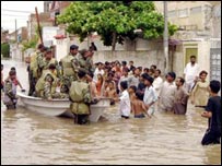 گزشتہ ایک ماہ سے بارشوں سے متاثر ہونے والا رن پٹھانی ریلوے پل ایک مرتبہ دوبارہ پانی کے ریلے سے متاثر ہوا ہے، جس کی وجہ سے کراچی سے اندرون ملک جانے اور آنے والی ٹرینوں کو حیدرآباد سے روانہ کیا جارہا ہے۔ محکمہ ریلوے کے وفاقی وزیر شیخ رشید احمد کا کہنا ہے کہ پل کی مرمت میں سات دن درکار ہوں گے۔ اس وقت تک مسافروں کو حیدرآباد پنہچانے اور کراچی لانے کے لئے مسافر کوچوں کا بندوبست کیا جارہا ہے۔ حیدرآباد، میرپورخاص، ٹھٹہ، ٹنڈو محمد خان اور بدین میں شدید بارش میں مکانات گرنے اور کرنٹ لگنے کے واقعات میں بارہ سے زائد افراد ہلاک جبکہ پچاس سے زائد زخمی ہوگئے ہیں۔ |