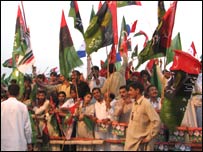 مینار پاکستان لاہور کی گراؤنڈ میں اپوزیشن جماعتوں کے حکومت مخالف بلوچستان کے عوام سے اظہار یک جہتی کی گئی ہے۔ سابق وزیر اعظم میاں نواز شریف نے اپنی ٹیلی فونک خطاب میں کہا کہ وہ بلوچستان کے عوام کے ساتھ جئیں گے اور ان کے ساتھ مریں گے۔ اس جلسہ کا اہتمام اتحاد برائے بحالی جمہوریت نے کیا تھا جبکہ اس میں اپوزیشن کے دوسرے بڑے اتحاد مجلس عمل، قوم پرست جماعتوں کے اتحاد پونم اور چند بلوچ رہنماؤں نے بھی شرکت کی۔ مینار پاکستان کی گراؤنڈ کو پیپلز پارٹی مسلم لیگ نواز کے جھنڈوں بڑے بینروں اور بے نظیر، نواز شریف اور شہباز شریف سمیت اپوزیشن کےدیگر رہنماؤں کی بڑی بڑی تصاویر سے سجایا گیا تھا اور جلوس کے شرکاء نعرے لگا رہے تھے ’گو مشرف گو‘،’قاتل قاتل مشرف قاتل‘،’فوج بیرکوں میں واپس جائے‘، ’وزیر اعظم بے نظیر‘، ’وزیر اعظم نواز شریف‘۔ ایک بینر پر لکھا تھا کہ’ اکبر بگٹی نے پاکستان بنانے میں بانی پاکستان کا ساتھ دیا تھا۔‘ مقررین نے نواب اکبر بگٹی اور ان کے ساتھیوں کی ہلاکت پر فوج اور حکومت کو شدید تنقید کا نشانہ بنایا اور اس خدشہ کا اظہارکیا کہ فوج کے اس طرح کے اقدامات سے ملک ٹوٹ سکتا ہے۔ بعض مقررین نے نواب اکبر بگٹی کو پاکستان کی فیڈریشن کا حامی بتایا اور کہا کہ انہوں نے کبھی پاکستان کے خلاف بات نہیں کی تھی۔ ا