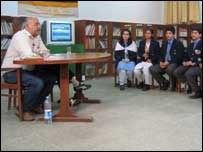اسی طرح ایک پاکستانی طاب علم نے کہا کہ اتحاد اور دوستی اچھی چیز ہے اور ہمیں کرنی چاہیے لیکن اس میں ہمیں دیکھنا پڑے گا کہ اختلافات شروع کیوں ہوئے اور اس کی یقیناً کوئی وجہ تھی۔ اس ضمن میں کشمیر کا بھی ذکر ہوا۔ لیکن ہر بار اختلافات کی بات کے بعد امن اور دوستی کی ضرورت اور ماضی کو بھلانے کی اہمیت کا ذکر بھی ہوا۔ دونوں ملکوں کے طالب علموں نے ایک دوسرے کو اپنے ملک آنے کی دعوت دی اور کہا کہ وہ ایک دوسرے کو خوب سیر کرائیں گے۔ انہوں نے ایک دوسرے سے ان کی ثقافت کے بارے میں بھی معلومات حاصل کرنی چاہیں۔ پاکستانی بچوں نے جاننا چاہا کہ کیا ہندوستان ویسا ہی جیسا کہ فلموں میں نظر آتا ہے۔ پروگرام کے آخر میں ڈاکٹر مبارک علی نے کہا کہ بچوں کو بزرگوں کی بات ماننے کی بجائے خود مستقبل کا راستہ تلاش کرنا چاہیے اور امن اور شانتی کے لیے ماضی کی بجائے مستقبل کی طرف دھیان دینا چاہیے۔ | اسی بارے میں بی بی سی ویب کاسٹ کی پذیرائی22 June, 2004 | پاکستان تصویر کے ذریعے سہی ملے تو ہیں23 June, 2004 | پاکستان ویب ملاقات کا دوسرا دن21 June, 2004 | پاکستان لاپتہ پاکستانی، براہِ راست ویب کاسٹ03 July, 2006 | پاکستان لاپتہ پاکستانی: بی بی سی ویب کاسٹ03 July, 2006 | پاکستان کراچی ممبئی کنسرٹ، ویڈیو اور آڈیو27 September, 2005 | فن فنکار کراچی اور ممبئی میں سروں کا پل27 September, 2005 | فن فنکار سونامی کیلیے پاک انڈیا کنسرٹ25 January, 2005 | فن فنکار | ||||||||||||||||||||||||||||||||||||||||