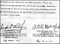 ہتھیار ڈالنے کا جو معاہدہ ہوا۔ جنرل نیازی کے دستخط نمایاں ہیں