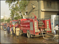 کراچی کے صنعتی علاقے سائٹ میں ایک فیکٹری میں پیر کی شام کو لگنے والی آگ میں اب تک پانچ افراد ہلاک ہو چکے ہیں جبکہ مزید ہلاکتوں کا خدشہ ہے۔ گو آگ مکمل طور پر بجھائی جا چکی ہے لیکن تباہ شدہ عمارت کے ملبے تلے دبے پانچ سے زیادہ افراد کے بارے میں ابھی تک یقین سی نہیں کہا جا سکتا کہ وہ زندہ ہیں یا نہیں۔ ان پانچ افراد کا تعلق بھی فائر بریگیڈ سے ہے اور ان کے رشتہ دار منگل کی شام تک عمارت کے باہر کھڑے اپنے عزیزوں کی سلامتی کی دعائیں مانگتے رہے۔ بری طرح سے جلی ہوئی عمارت کی حالت اس قدر خستہ ہے کہ ملبے میں دبے ہوئے افراد کی تلاش کے لیے عمارت کے اندر جانے کو کوئی بھی تیار نہیں۔ چوبیس گھنٹے کی محنت کے بعد کراچی فائر بریگیڈ کا عملہ تھکن سے نڈھال عمارت کی چاردیواری سے باہر نکل آیا ہے اور ریسکیو آپریشن پاک بحریہ نے سنبھال لیا ہے۔