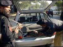 کراچی میں بھی نو محرم کے جلوس کے لیے پولیس اور رینجرز کا گشت ہوتا رہا جبکہ جلوس کے راستے یعنی محمد علی جناح روڈ کی طرف نکلنے والی تمام سڑکوں اور گلیوں کی مکمل ناکہ بندی کی گئی تھی، اور ایک ہیلی کاپٹر میں فضا میں گھومتا رہا۔ شہر میں حفاظتی انتظامات کئی دن پہلے سے شروع کر دیے گئے تھے اور کراچی آنے والی گاڑیوں اور بسوں کی تلاشی لی جاتی رہی۔ کراچی میں ہمارے نامہ نگار ادریس بختیار نے بتایا کہ آج کے جلوس کے دوران عزاداران نے ظہرین کی نماز کے بعد بارگاہ امام علی رضا کے قریب دھرنا دیا اور تین لاپتہ افراد کی تلاش یا رہائی کا مطالبہ کیا۔ حکام کی اس یقین دہانی کے بعد کہ ان میں سے ایک ڈاکٹر علی رضا کے بارے میں ان کے لواحقین کو آج رات تک آگاہ کر دیا جائے گا، جلوس پرامن طور پر روانہ ہو گیا۔ | اسی بارے میں ڈیرہ اسماعیل خان میں بھی خود کش حملہ29 January, 2007 | پاکستان کراچی: سکیورٹی مزید بڑھا دی گئی28 January, 2007 | پاکستان پاکستان: سکیورٹی انتظامات سخت28 January, 2007 | پاکستان پشاور: بم دھماکے میں 12 افراد ہلاک27 January, 2007 | پاکستان ’طالبان، القاعدہ ملوث ہوسکتے ہیں‘27 January, 2007 | پاکستان اسلام آباد: خودکش حملہ، دو ہلاک26 January, 2007 | پاکستان | ||||||||||||||||||||||||||||||||||||||||