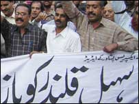 صحافتی، سیاسی اور سماجی تنظیموں نے صوبہ سرحد کے دارالحکومت پشاور میں حکومت کو دھمکی دی ہے کہ ایک گمشدہ مقامی صحافی کی بازیابی میں مزید تاخیر کی صورت میں ان کی احتجاجی تحریک پرتشدد شکل اختیار کر سکتی ہے۔ پشاور کے ایک صحافی سہیل قلندر اور ان کے ایک ساتھی محمد نیاز دو جنوری سے لاپتہ ہیں۔ سوموار کے روز ان کی گمشدگی کو پچاس روز مکمل ہونے پر ملک بھر میں صحافیوں کی نمائندہ تنظیم فیڈرل یونین آف جرنلسٹس کی اپیل پر یوم احتجاج منایا گیا۔ پشاور پریس کلب میں منعقد ہونے والے احتجاج میں صحافیوں کے علاوہ سرکاری اور غیرسرکاری اداروں، تاجر تنظیموں، واپڈا، اساتذہ، پیرا میڈیکل ایسوسی ایشن، اخبار فروش یونین اور فنکاروں نے بڑی تعداد میں شرکت کی۔ اس موقع پر اپنے خطاب میں مقررین نے حکومت سے صحافی اور اس کے ساتھی کی فل الفور بازیابی کا مطالبہ کیا۔ ان کا الزام تھا کہ ملک میں امن عامہ کی موجودہ صورتحال سے ظاہر ہوتا ہے کہ وفاقی و صوبائی حکومتیں نا کام ہو چکی ہے۔ بینرز اور پلے کارڈز اٹھائے شرکاء نے بعد میں پریس کلب کے باہر سڑک پر مظاہرہ بھی کیا اور نعرہ بازی کی۔ اس موقع پر ایک قرار داد میں مظاہرین نے حکومت کو متنبہ کہا کہ اب تک ان کی تحریک پرامن رہی لیکن صحافی کی بازیابی میں مزید تاخیر سے اس میں نہ صرف شدت آئے گی بلکہ یہ پرامن بھی نہیں رہی گی جس کی ذمہ داری حکومت پر عائد ہوگی۔ پشاور کے صحافیوں نے بطور احتجاج پہلے ہی تمام سرکاری پریس کانفرنسوں کا بائیکاٹ کر رکھا ہے۔ صحافتی اور دیگر عوامی حلقوں میں سہیل قلندر کی بازیابی میں دن بدن تاخیر سے تشویش میں اضافہ ہو رہا ہے۔ کراچی کراچی میں سہیل قلندر کی بازیابی کے لیے صحافیوں نےاحتجاجی جلوس نکالا اور گورنر ہاؤس کے سامنے دھرنا دیا۔ جلوس پریس کلب سے ہوتے ہوا گورنر ہاؤس پہنچا جہاں صحافیوں نے دھرنا دیا اور گورنر کے نمائندے کو یادداشت نامہ پیش کیا گیا۔ اس سے قبل کراچی پریس کلب میں جلسہ منعقد کیا گیا، جسے صحافی تنظیموں کے رہنما مظہر عباس، شفیع الدین اشرف اور دیگر نے خطاب کرتے ہوئے کہا کہ وفاقی وزیر اطلاعات اور وزیر داخلہ کا ابھی تک کوئی واضح بیان نہیں آیا ہے جس سے وہ یہ سمجھنے پر مجبور ہیں کہ سہیل قلندر ریاستی تحویل میں ہیں۔ انہوں نے کہا کہ انہیں خدشہ ہے کہ سہیل قلندر سے بھی ایسا کچھ نہ کیا جائے جو صحافی حیات اللہ کے ساتھ سلوک کیا گیا۔ ان کا کہنا تھا کہ سرحد کی صوبائی حکومت نے بھی مجرمانہ خاموشی اختیار کی ہوئی ہے، یہ واقعہ ان کی حدود میں ہوا ہے ان کو یہ واضح کرنا چاہیے کہ سہیل قلندر ان کے ماتحت کسی ادارے کی تحویل میں نہیں ہے۔ صحافی رہنماؤں نے بتایا کہ اکیس فروری کو بین الاقوامی صحافیوں کی ایک ٹیم پاکستان آرہی ہے جو یہاں صحافیوں پر ہونے والے مظالم کے حقائق کی چھان بین کرے گی، یہ ٹیم اپنی رپورٹ اقوام متحدہ کے انسانی حقوق کے ادارے کو بھی پیش کرے گی۔ | اسی بارے میں اخبار کا ایڈیٹر کئی روز سے ’لاپتہ‘18 January, 2007 | پاکستان سہیل قلندر کی بازیابی کے لیے احتجاج31 January, 2007 | پاکستان پشاور میں حکومت پر عدم اعتماد16 February, 2007 | پاکستان دو لاپتہ افراد تیرہ ماہ بعد برآمد09 November, 2006 | پاکستان | ||||||||||||||||||||||||||||||||||||||||