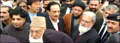 پیر کے روز اسلام آباد میں متحدہ مجلس عمل کے سربراہ قاضی حسین احمد کی رہائش گاء پر ہونے والے اجلاس کے بعد اپوزیشن جماعتوں کے رہنماؤں نے ایک مشترکہ پریس کانفرنس سے خطاب کیا۔