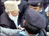 قاضی حسین احمد نے کہا کہ ’معطل‘ چیف جسٹس کو کیمپ آفس بلانے سے یہ بات ثابت ہوتی ہے کہ یہ عدلیہ کی نہیں بلکہ طاقت کی بالادستی ہے۔،