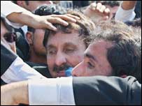 چیف جسٹس کے عہدے سے معطل کیئے جانے والے جسٹس افتخار محمد چودھری کے بارے میں ان کے وکلاء کا دعوی ہے کہ وہ بدستور حراست میں ہیں جبکہ حکومت ان دعوی کو جھوٹ اور لغو قرار دے رہی ہے۔ جسٹس افتخار محمد چودھری کے وکیل چودھری اعتزاز احسن نے بدھ کو بی بی سی اردو سروس سے ایک انٹرویو میں دعوی کیا ہے ان کے موکل کو بدستور حراست میں رکھا جا رہا ہے اور ابھی تک ان کو یا کسی دوسرے وکیل کو ان سے ملنے کی اجازت نہیں دی گئی ہے۔ تاہم وزیر اعلی پنجاب چودھری پرویز الہی نے اعتراز احسن کے اس بیان کو جھوٹ قرار دیا اور اس بات پر بھی سوال اٹھایا کہ چودھری محمد افتخار نے کب چودھری اعتزاز کو اپنا وکیل مقرر کیا۔ انہوں نے الزام لگایا کہ چودھری اعتزاز اپنی سیاست چمکانے کی کوشش کر رہے ہیں۔ چودھری اعتزاز احسن نے کہا کہ منگل کی شام کو وہ اور ان کے ساتھ دوسرے وکلاء حامد خان اور علی احمد کرد چیف جسٹس چودھری محمد افتخار سے ملنے کے لیے ان کی رہائش گاہ پر پہنچے جہاں پر تعینات پولیس اور انتظامیہ کے اہلکاروں نے ان کو اندر جانے کی اجازت نہیں دی۔ چودھری اعتزاز نے ان حکومتی الزامات کی سختی سے تردید کی کہ وہ اور دیگر وکلاء اس معاملے کو سیاسی رنگ دے رہے ہیں۔ انہوں نے کہا کہ بدھ کی صبح بھی وہ اور دیگر وکلاء قائم مقام چیف جسٹس اور سپریم جوڈیشل کونسل کے سربراہ جاوید اقبال سے ملنے گئے تھے لیکن انہیں ملاقات کا وقت نہیں دیا گیا۔ انہوں نے کہا چیف جسٹس کے سٹاف میں شامل نصیر خان کے ذریعے انہوں نے ملاقات کا وقت مانگا تھا لیکن ان کی درخواست پر کوئی جواب نہیں دیا گیا۔ سپریم جوڈیشل کونسل کے بارے میں ایک سوال پر اعتزاز احسن نے کہا کہ یہ ایک مشاورتی ادارہ ہے اور اس کے پاس چیف جسٹس کو معطل کرنے کے اختیارات نہیں ہیں۔ انہوں نے کہا کہ ابھی تک جسٹس افتخار محمد چودھری پر لگائے جانے والے الزامات یا چارج شیٹ سے ہی انہیں آگاہ نہیں کیا گیا۔ انہوں نے کہا کہ نعیم بخاری کے خط میں جو الزامات لگائے گئے ہیں ان میں کوئی الزام بھی اتنا سنگین نہیں کہ جس کا دفاع نہ کیا جا سکے۔ چودھری اعتزاز نے کہا کہ اگر انہیں اپنے مؤکل سے ملنے کی اجازت نہیں دی گئی تو یہ ’فیئر ٹرائل‘ یا منصفانہ مقدمہ نہیں ہو گا۔ وزیرِ اعلی پنجاب نے وکلاء کے ملک گیر احتجاج کے بارے میں کہا کہ یہ کہنا بالکل غلط ہے کہ سارے ملک کے وکلاء یا وکلاء کی اکثریت ہڑتال اور احتجاج کر رہی ہے۔ انہوں نے کہا کہ صرف چند وکلاء احتجاج کر رہے ہیں۔ وزیر اعلی پنجاب نے کہا کہ بدھ کو لاہور میں انہوں نے ایک وکلاء کنونشن منعقد کیا تھا جس میں دو ہزار کے قریب وکلاء نے شرکت کی۔ انہوں نے کہا کہ آئین کی دفعہ دو سو نو کے تحت وزیر اعظم نے ایک ریفرنس چیف جسٹس کے خلاف صدر کو بھیجا تھا جو صدر سپریم جوڈیشل کونسل کو بھیجنے کے پابند تھے۔ انہوں نے کہا کہ کیونکہ معاملہ چیف جسٹس کا تھا اس لیے ان کو چیف جسٹس کے عہدے سے علیحدہ کیا گیا تاکہ وہ سیریم جوڈیشل کونسل کے سامنے ایک پیش ہو سکیں۔ | اسی بارے میں جسٹس افتخار کا پہلا تحریری بیان13 March, 2007 | پاکستان وکلاء: مسلسل احتجاج کا تیسرا دن13 March, 2007 | پاکستان ’ملزم جیسی پیشی ہیرو جیسا استقبال‘13 March, 2007 | پاکستان ایڈوائس دی گئی: وزیرِ اطلاعات13 March, 2007 | پاکستان وکلاء کنڈی توڑ کر اسمبلی میں 14 March, 2007 | پاکستان ہفتے کو لاہور میں وکلاء کنونشن14 March, 2007 | پاکستان | ||||||||||||||||||||||||||||||||||||||||