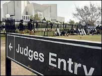 ہمارے نامہ نگار ہارون رشید کے مطابق معطل چیف جسٹس افتخار محمد چودھری کی رہائش گاہ کے باہر بھی پولیس کے بھاری تعداد موجود ہے۔ بلوچستان ہاؤس کے باہر پولیس نے ایک ناکہ قائم کر رکھا ہے۔ پولیس کی سختی اور رکاوٹوں کی وجہ سے وکلاء کو بھی شدید پریشانی اٹھانی پڑ رہی ہے۔ سابق اٹارنی جنرل قاضی فاروق اور بعض دیگر وکلاء اپنی گاڑیاں ایمبیسی روڈ پر پارک کرنے کے بعد ایک کلومیٹر تک پیدل چل کر سپریم کورٹ پہنچے۔ سپریم کورٹ کے باہر جمع ہونے والے وکلاء کی تعداد کم ہے اور ججز کے داخلے کے لیے مخصوص دروازے پر پنجاب پولیس سمیت بھاری نفری تعینات ہے۔ وکلاء اور صحافیوں کو ججز کے داخلے والے دروازے سے پولیس نے کافی دور ہٹا کر رکھا ہے۔ |