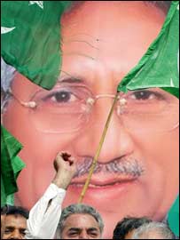 پاکستان کے صدر جنرل پرویز مشرف نے کہا ہے کہ عدالتی معاملے کو سیاسی رنگ نہ دیا جائے اور حکومت اس معاملے پر کسی کو خلفشار پیدا کرنے کی اجازت نہیں دے گی۔ منگل کو نالہ لئی کے کناروں پر بائیس کلومیٹر نان سٹاپ سڑک تعمیر کرنے کا سنگ بنیاد رکھنے کے بعد لیاقت باغ میں پاکستان مسلم لیگ (ق) کے جلسۂ عام سے خطاب کرتے ہوئے انہوں نے حزب مخالف کی جانب سے سپریم کورٹ کے چیف جسٹس کی معطلی کے خلاف پیر کو کیے گئے احتجاج کو ناکام قرار دیا۔ صدر نے خود کش حملوں کو غیر اسلامی قرار دیتے ہوئے عوام سے ایک بار پھر اپیل کی کہ وہ دہشت گردی اور انتہا پسندی روکنے میں سکیورٹی ایجنسیوں کی مدد کریں۔ انہوں نے بتایا کہ وہ تین خود کش بمباروں کی فلمیں دیکھ چکے ہیں جو جنت کے چکر میں حملے کرتے ہیں۔ صدر کے مطابق خود کش حملہ جنت کا راستہ نہیں ہے۔ صدر نے گمشدہ افراد کا ذکر کرتے ہوئے کہا کئی لاپتہ افراد ایسے ہیں جنہیں شدت پسند گروہوں نے اکسایا اور وہ والدین کو بتائے بنا شدت پسندوں سے ملے ہوئے ہیں۔ انہوں نے انسانی حقوق کی تنظیموں سے کہا کہ وہ جاکر ایسے جہادیوں کو دیکھیں جو نوجوانوں کو گمراہ کر رہی ہیں۔ انہوں نے کہا کہ وہ اللہ کے سوا کسی سے نہیں ڈرتے اور پاکستان سے انتہا پسندی اور شدت پسندی کے خاتمے کی کوشش جاری رکھیں گے کیونکہ ان کے بقول ان کی موجودگی میں پاکستان ترقی نہیں کرسکتا۔ صدر کے جلسے کو کامیاب بنانے کے لیئے راولپنڈی شہر میں عام تعطیل کا اعلان کیا گیا۔ شہر کی مرکزی شاہراہ مری روڈ کے ایک بڑے حصے کو عام ٹریفک کے لیے بند کر دیا گیا جس سے عام لوگوں کو کافی دشواری کا سامنا کرنا پڑا۔ صدر ان تمام سکیورٹی انتظامات کے باوجود لیاقت باغ سے چند کلو میٹر کے فاصلے پر واقع آرمی ہاؤس سے بذریعہ ہیلی کاپٹر جلسہ گاہ پہنچے۔ سکیورٹی انتظامات کا یہ عالم تھا کہ جلسہ گاہ سے متصل راولپنڈی پریس کلب کو بھی انتظامیہ نے سیل کردیا اور صحافیوں کے داخلے پر بھی پابندی لگا دی۔ وزیر اطلاعات شیخ رشید احمد نے اپنے خطاب