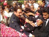 پاکستان کے غیرفعال چیف جسٹس افتخار محمد چودھری نے کہا ہے کہ اگر اختیارات ایک جگہ مرکوز ہوجائیں تو اس سے آمریت پیدا ہوتی ہے، اس لئے اختیارات کی تقسیم ضروری ہے۔ حیدرآباد میں اتوار کو وکلاء کنونشن سے خطاب کرتے ہوئے انہوں نے کہا کہ انصاف کی فراہمی بنیادی انسانی حقوق میں شامل ہے، اس لئے انصاف فراہم کرنے والے اداروں کا آزاد ہونا ضروری ہے۔ جسٹس افتخار محمد چودھری نے پینتیس منٹ کی تقریر کی جو لکھی ہوئی تھی۔ ان کا کہنا تھا کہ جب تک عدالتوں پر کسی بھی قسم کا دباؤ ہوگا انصاف کی فراہمی میں مسائل پیدا ہوں گے۔ ان کا کہنا تھا کہ وکلاء اتحاد برقرار رکھیں اور میر جعفر اور میرصادق جیسے غداروں کواپنی صفوں میں شامل ہونے نہ دیں۔ انہوں نے بتایا کہ انہوں نے گزشتہ بیس ماہ میں حیدرآباد میں منو بھیل، مسمات سوڈھی سمیت چھ ہزار مقدمات کا ازخود نوٹیس لیا اور سماج کے مختلف طبقات کو انصاف فراہم کرنے کی کوشش کی۔ اس سے قبل پاکستان کے’غیرفعال‘ چیف جسٹس افتخار چودھری سکھر سے بذریعہ سڑک حیدرآباد پہنچے تھے۔ سکھر سے حیدرآباد کے راستے میں سیاسی جماعتوں کے کارکنوں اور عام افراد نے قومی شاہراہ کے دونوں اطراف کھڑے ہوکر ان کا استقبال کیا اور ان پر پھول نچھاور کیے۔ حیدرآباد میں ہونے والے وکلاء کنوینشن میں شہر اور اس کے آس پاس کے اضلاع کے وکلاء، سندھ ہائی کورٹ اور ماتحت عدالتوں کے جج شریک تھے ۔ جسٹس افتخار محمد چودھری کو کنوینشن میں شرکت کی دعوت حیدر آباد بار نے دی تھی۔ نو مارچ کو ’غیر فعال‘ بنائے جانے کے بعد جسٹس افتخار محمد چودھری کا یہ پہلا دورہ سندھ تھا اور کسی بار ایسوسی ایشن سے یہ ان کا دوسرا خطاب تھا۔ حیدرآباد میں وکلاء سے خطاب کرنے کے بعد جسٹس افتخار محمد کراچی ایئرپورٹ پہنچے جہاں سے وہ اسلام آباد روانہ ہوگئے۔ روانگی سے قبل صحافیوں سے بات کرتے ہوئے انہوں نے کہا کہ وہ چیف جسٹس ہیں اس لئے ججوں کو ان کے پروگرام میں شریک ہونا تھا تاہم وہ ان ججوں کے مشکور ہیں جنہوں نے حیدرآباد اور سکھر میں ان کے پروگرام شرکت کی۔ کراچی بار کو خطاب کرنے کے بارے میں ان کا کہنا تھا کہ سپریم کورٹ بار ایسوسی ایشن کے صدر منیر ملک جب کہیں گے وہ کراچی پہنچ جائیں گے۔ ان کے ساتھ منیر ملک بھی موجود تھے، جنہوں نے جسٹس افتخار محمد چودھری کے ساتھ اسلام آباد جانے کی کوشش کی مگر سیکورٹی حکام نے انہیں روک دیا تاہم وکلاء رہنماؤں کے احتجاج کے بعد انہیں جسٹس افتخار کے ساتھ جانے کی اجازت دے دی گئی۔ |