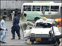 چیف جسٹس آف پاکستان جسٹس افتخار محمد چودھری کراچی ائیر پورٹ پر سارا دن’محصور‘ رہنے کے بعد واپس اسلام آباد پہنچ گئے ہیں جبکہ کراچی میں سنیچر کو تشدد کے مختلف واقعات میں کم از کم چونتیس افراد ہلاک اور ایک سو چالیس کے قریب زخمی ہو گئے ہیں۔ جسٹس افتخار محمد چودھری سندھ ہائی کورٹ بار ایسوسی ایشن کی تقریب سے خطاب کرنے کے لیے کراچی آئے تھے لیکن انہیں ایئرپورٹ سے باہر ہی نہیں جانے دیا گیا۔ بی بی سی اردو کے مسعود عالم کے مطابق جب حکومتِ سندھ نے ان کے وکلاء کو صوبہ بدر کرنے کے احکامات جاری کیے تو جسٹس افتخار نے بھی ان کے ہمراہ واپسی کا فیصلہ کر لیا۔ کراچی میں خون کی ہولی ادھر شہر بھر ہونے والے ہنگاموں میں اطلاعات کے مطابق کم از کم چونتیس افراد ہلاک جبکہ ایک سو چالیس کے قریب زخمی ہوئے ہیں۔