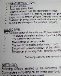 کراچی سکیورٹی پلان کی دستاویز کا عکس
