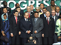 ان کا کہنا تھا: ’ہمیں لوگوں کو اسلام کی اصل روح سے شناس کرانا چاہیے، اسلام امن اور سلامتی کا دین ہے۔ ہمیں چیلنجز کو مواقعوں میں تبدیل کرنا ہوگا‘۔ مشرق وسطیٰ میں امن کے لیے انہوں نے مسئلہ فلسطین کے حل پر بھی زور دیا جبکہ عراق میں پائیدار امن کے لیے ان کی تجویز تھی کہ اس ملک میں بیرونی مداخلت بند ہونی چاہیے۔ صدر کا کہنا تھا کہ افغانستان میں امن کی کثیر الجہتی حکمت عملی اختیار کرنا ہو گی۔ پاکستان اور بھارت کے درمیان تعلقات کا ذکر کرتے ہوئے صدر مشرف نے کہا کہ دونوں ممالک اس معاملے پر متفق ہیں کہ کسی مسئلے کا فوجی حل ممکن نہیں اور یہ کہ ماضی کے مقابلے میں اب تعلقات بہت بہتر ہیں۔ اجلاس کے اختتام پر ایک مشترکہ اعلامیہ جاری کیا جائے گا۔ | اسی بارے میں او آئی سی: وزرائے خارجہ کا اجلاس14 May, 2007 | پاکستان | ||||||||||||||||||||||||||||||||||||||||