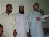 مدرسے کے نائب مہتمم عبدالرشید غازی نے اس موقع پر حکومت کو دھمکی دیتے ہوئے کہا اگر کوئی کارروائی ہوئی تو تمام ملک کے مدرسے اٹھ کھڑے ہوں گے۔ تاہم انہوں نے کہا کہ ان کے طلبہ کی رہائی کی صورت میں باقی ماندہ دو پولیس اہلکاروں کو بھی رہا کر دیا جائے گا۔ لال مسجد کے علاقے میں کشیدگی میں اضافہ دیکھا جا رہا ہے۔ اتوار کو مدرسے کے طلبہ ریت کی بوریوں سے نئے مورچے قائم کرتے رہے۔ ادھر مسجد سے جنگی ترانے بجائے جانے اور اردگرد کی سڑکیں بند کرنے کی اطلاعات ہیں۔ مسجد کے سپیکروں سے اعلان جنگ ہوا ہے جس کے بعد طلبہ لاٹھیوں سے مسلح ہوکر باہر نکل آئے ہیں۔ واضح رہے کہ واقع لال مسجد کے لٹھ بردار طالبعلموں نے یرغمال بنائے گئے اسلام آباد پولیس کے چار اہلکاروں میں سے دو کو سنیچر کے روز رہا کردیا تھا۔ طالبعلموں نے ان کو چھوڑنے کے بدلے میں حکومت سے زیرحراست اپنے ساتھیوں کی رہائی کا مطالبہ کیا تھا۔ |