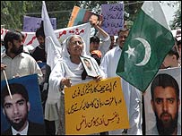 پاکستان میں مبینہ طور پر لاپتہ ہونے والے افراد کی بازیابی کے لیے سرگرم ڈیفنس آف ہیومن رائٹس نامی تنظیم کی جانب سے ملگ گیر سطح پر احتجاجی مظاہروں کے اعلان کے بعد اس سلسلے کا پہلا مظاہرہ پیر کو پشاور میں ہوا جس میں گمشدہ افراد کے درجنوں لواحقین نے شرکت کی۔ پشاور ہائی کورٹ سے پریس کلب تک اس احتجاجی مظاہرے میں مبینہ طور پر لاپتہ ہونے والے افراد کے لواحقین نے گمشدہ افراد کی بڑی بڑی تصاویر اٹھا رکھی تھیں اور حکومت کے خلاف نعرے لگاتے رہے۔ مظاہرے میں صوبہ پنجاب اور صوبہ سرحد کے مختلف علاقوں سے تعلق رکھنے والے لاپتہ افراد کے عزیز و اقارب نے شرکت کی جن میں زیادہ تعداد خواتین کی تھی۔ ڈیفنس آف ہیومن رائٹس نامی تنظیم گمشدہ افراد کی بازیابی کے لیے دو ہزار چھ میں بنائی گئی تھی اور بقول آمنہ جنجوعہ وہ اگلے چند دنوں کے دوران احتجاج کا دائرہ وسیع کرتے ہوئے پنجاب کے مختلف شہروں سے مظاہروں کاآغاز کریں گے اور اس سلسلے کا اگلا مظاہرہ لاہور ہائی کورٹ کے سامنے منعقد ہوگا۔ بعد میں پشاور پریس کلب میں ایک نیو ز کانفرنس سے خطاب کرتے ہوئے دو ہزار چھ سے لاپتہ مسعود احمد جنجوعہ کی بیوی اور ڈیفنس آف ہیومن رائٹس کی فعال رہنما آمنہ مسعود نے کہا کہ خفیہ اداروں کی جانب سے مبینہ طور پر اٹھائے گئے تقریباً چھپن افرار کا پتہ چل گیا۔