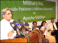 افواج پاکستان کے تجارتی اور اقتصادی مفادات کے بارے میں ڈاکٹر عائشہ صدیقہ کی کتاب کی رونمائی کی تقریب سے خطاب کرتے ہوئے اعتزاز احسن اور دیگر مقررین نے کہا ہے کہ فوج کی حکمرانی سے جان چھڑانے اور عوامی حکمرانی قائم کرنے کے لیے یہ بہترین موقع ہے۔