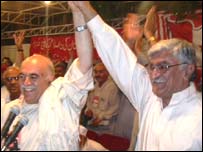 ایک قرار داد میں کہا گیا کہ افغانستان میں پاکستان کی جانب سے مداخلت بند کی جائے اور اس کے علاوہ پاکستان میں ذرائع ابلاغ پر عائد پابندیوں کی مذمت کی گئی۔ قراردادوں میں بلوچستان میں جاری فوجی کارروائی کو بند اور بلوچستان نیشنل پارٹی کے سربراہ سردار اختر مینگل سمیت تمام سیاسی کارکنوں اور قائدین کو رہا کرنے کا مطالبہ بھی کیا ہے۔ اس جلسہ عام سے عوامی نیشنل پارٹی کے سربراہ اسفندیار ولی نے بھی خطاب کیا ہے اور اپنی تقریرمیں پشتونوں کے اتحاد پر زور دیا۔ انہوں نے کراچی میں بارہ مئی کے واقعہ کے حوالے سے وفاقی اور صوبائی حکومت کے ساتھ ساتھ متحدہ قومی موومنٹ کو ذمہ دار ٹھہرایا۔ اسفندیار ولی نے محمود خان اچکزئی کو ایک مرتبہ پھر اتحاد کی دعوت دی تو اس موقع پر موجود ہزاروں لوگوں نے تالیاں بجائیں اور نعرے لگائے۔ اس جلسے میں کراچی سے پشتون قبائل کے جرگے نے بھی شرکت کی اور جلسے کے بعد دونوں رہنماؤں سے ملاقات کی۔ | اسی بارے میں بلوچستان: کراچی پرتعزیتی قرار داد 19 May, 2007 | پاکستان حکومت مخالف تحریک کا اعلان12 March, 2007 | پاکستان معطلی کا معاملہ، پونم کی ہڑتال11 March, 2007 | پاکستان بلوچستان پر سیمینار میں گلے شکوے27 February, 2007 | پاکستان ہربلوچ بغاوت کی راکھ سے مزاحمت پیدا ہوئی22 February, 2007 | پاکستان | ||||||||||||||||||||||||||||||||||||||||