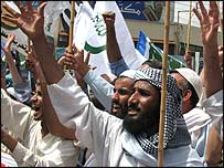ملکہ برطانیہ کی جانب سے مصنف سلمان رشدی کو سر کا اعزاز دئے جانے کے خلاف مذہبی جماعتوں نے ملک کے مختلف شہروں میں نماز جمعہ کے بعد احتجاجی مظاہرے کیے ہیں۔ مظاہروں میں سلمان رشدی کے پتلے نذر آتش کیے گئے اور برطانیہ سے فیصلہ کیا گیا کہ وہ اپنا یہ فیصلہ واپس لے۔ دارالحکومت اسلام آباد میں ایم ایم اے یعنی متحدہ مجلس عمل کی جانب سے جی نائن سیکٹر میں احتجاجی مظاہرہ کیا گیا جس میں کافی تعداد میں لوگوں نے شرکت کی۔ مظاہرے کی قیادت قومی اسمبلی میں قائد حزب اختلاف اور ایم ایم اے کے سیکریٹری جنرل مولانا فضل الرحمن اور ایم ایم اے کے میاں اسلم اور دیگر رہنماؤں نے کی۔ مولانا فضل الرحمن نے ملکہ برطانیہ کے اس اقدام کی مذمت کرتے ہوئے کہا ’ہم آج ایک بار پھر برطانیہ کو یہ جتلانا چاہتے ہیں کہ تم پاکستان کے یا عالم اسلام کے اربوں مسلمانوں کے اس غدار کو ایک اعزاز تو دے سکتے ہو لیکن یہ کبھی بھی تمہارا تحفظ نہیں کرسکیں گے اور مسلمان اپنے دشمنوں کا تعاقب کرتے رہیں گے تاوقتیکہ انہیں کیفر کردار تک نہ پہنچادیں۔‘