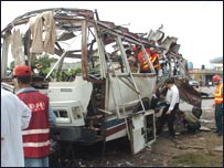 ایک عینی شاہد نے بتایا کہ پورا علاقہ دھماکے کی گونج سے لرز اٹھا۔ بس کی چھت دھماکے سے اڑ گئی تھی اور بس میں سوار لوگوں کے جسموں کے ٹکڑے دور دور تک بکھرگئے۔