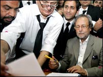 وزیر اعظم شوکت عزیز نے صدر جنرل پرویز مشرف کو دوبارہ صدر منتخب کراونے کے لئے ان کے کاغذات نامزدگی جمعرات کی صبح الیکشن کمیشن میں جمع کر دیے۔