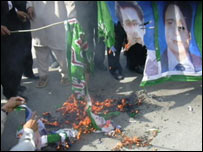 مظاہروں میں صدر پرویز مشرف کے خلاف سخت نعرے بازی کی گئی۔