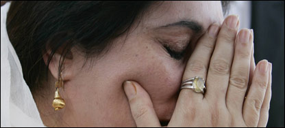 پاکستان پیپلز پارٹی کی چیئرپرسن بینظیر بھٹو آٹھ سالہ خود ساختہ جلاوطنی کے بعد کراچی پہنچ گئی ہیں جہاں پورے ملک سے جمع ہونے والے کارکنوں کی ایک بہت بڑی تعداد ان کے استقبال کے لیے موجود ہے۔ بینظیر بھٹو خصوصی طور پر تیار کیے گئے بلٹ پروف ٹرک پر سوار ہیں لیکن وہ بلٹ پروف کیبن کی بجائے پارٹی رہنماوں کے ساتھ ٹرک کے عرشے پر کھڑے ہو کر کارکنوں کے والہانہ نعروں کا جواب دے رہی ہیں۔ جلوس میں شامل ہمارے نامہ نگار احمد رضا کے مطابق سوا تین گھنٹے گزر جانے کے باوجود بے نظیر کا جلوس کارکنوں کے اژدھام کے پیش نظر سٹار گیٹ تک نہیں پہنچا سکا۔ ٹرک پر ان کے ہمراہ مخدوم امین فہیم، یوسف رضا گیلانی، شاہ محمود قریشی، قائم علی شاہ، نثار کھوڑو شیری رحمان اور پیپلز پارٹی کے دیگر رہنما بھی سوار ہیں۔ کراچی ایئر پورٹ اور شاہراہ فیصل پر پارٹی کے کارکنوں میں زبردست جوش وخروش پایا جاتا ہے اور وہ پارٹی کے گانوں ڈھول کی تھاپ پر بھنگڑے ڈال رہے ہیں۔ اس سے قبل کراچی پہنچنے پر بینظیر بھٹو آب دیدہ ہو گئیں۔ انہوں نے بڑے جذباتی انداز میں انہوں نے ہوائی اڈے پر منتظر لوگوں کا ہاتھ ہلا کر جواب دیا۔کراچی پہنچنے کے بعد بینظیر بھٹو کا کہنا تھا کہ ’یہ ایک انتہائی جذباتی لمحہ ہے۔ میں اس وقت کی بہت دن سے منتظر تھی اور جب میں یہاں اتری تو اپنے جذبات پر قابو نہ رکھ سکی۔ مجھے اب تک یقین نہیں آ رہا کہ وہ دن جس کا میں نے مہینوں، سالوں انتظار کیا ہے وہ آخرِ کار آ گیا ہے۔‘ فرانسیسی خبر رساں ادارے اے ایف پی کی جانب سے سنہ 1986 میں اپنی واپسی سے تقابل کے سوال پر بینظیر بھٹو کا کہنا تھا کہ’ میری عمر زیادہ ہوگئی ہے اور میں نے گزشتہ بیس برس میں میں بہت کچھ سیکھا ہے لیکن ہم اب تک آمریت سے لڑ رہے ہیں‘۔ بینظیر کی آمد کے موقع پر کراچی شہر خصوصاً ہوائی اڈے اور قائداعظم کے مزار اور بلاول ہاؤس تک پارٹی کے لاتعداد جھنڈے ، پوسٹروں اور بینروں سے سجایا گیا ہے۔ کراچی میں معمول کی زندگی مکمل طور پر معطل ہو کر رہی گئی ہے اور ٹرانسپورٹ اور بسیں نہ ہونے کی وجہ سے لوگوں دفتروں تک نہیں پہنچ سکے جبکہ سکول اور تعلیمی اداروں میں عام تعطیل ہے۔ کراچی کے ہوائی اڈے کے باہر اور شاہراہ فیصل پر موجود پارٹی کے کارکنوں اور حمایوں کی تعداد کے بارے میں متضاد دعوی کیئے جا رہے ہیں اور بینظیر کے استقبال کا انیس سو چھیاسی میں لاہور میں ہونے والے استقبال سے موازنہ کیا جا رہا ہے۔ وہ امارات ایئر لائنز کی پرواز نمبر ای کے 606 کے ذریعے دبئی سے کراچی پہنچیں۔ الامارات فضائی کمپنی کی پرواز ستاون منٹ کی تاخیر سے روانہ ہوئی اور بینظیر کا طیارہ پاکستان کے مقامی وقت کے مطابق ایک بج کر پنتالیس منٹ پر جناح انٹرنیشنل ایئرپورٹ پر اترا۔