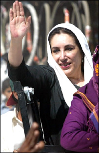 سابق پاکستانی وزیراعظم بینظیر بھٹو نے اتوار کے روز لاڑکانہ شہر کا دورہ کیا جہاں انہوں نے بتایا کہ ابھی ان کی صدر پرویز مشرف سے ملاقات طے نہیں ہوئی ہے۔ ذرائع ابلاغ سے بات کرتے ہوئے بینظیر نے کہا کہ وہ جلد ہی پنجاب کا بھی دورہ کرینگی اور انہوں نے پیپلز پارٹی کے صوبائی رہنماؤں سے اس بارے میں بات چیت کی ہے جو ان کے دورے کی تیاریاں کر رہے ہیں۔ بینظیر بھٹو نے کہا کہ ان کے لاڑکانہ کے دورے کو الیکشن مہم کا آغاز سمجھ لیں اور ’اسے بینظیر اور عوام کے درمیان محبت کا دوبارہ آغاز بھی کہہ سکتے ہیں۔‘ انہوں نے ایک سوال کے جواب میں کہا کہ آمریت اور جمہوریت ایک ساتھ نہیں چل سکتے اور اسی لیے انہوں نے جنرل مشرف کے سویلین صدر بننے کی بات کی ہے۔ بینظیر نے بتایا کہ عوام کا جذبہ دیکھ کر غور کررہی ہیں کہ وہ عوامی اجتماعات کی شروعات کریں۔ انہوں نے کہا کہ دہشت گردوں کو اجازت نہیں دی جاسکتی کہ وہ پی پی پی کے یا سیاسی رہنماؤں کے پروگرام ڈِکٹیٹ کریں۔ پی پی پی کی رہنما کا کہنا تھا کہ وہ ملک کے کونے کونے میں جانا چاہتی ہیں مگر حفاظتی انتظامات کی وجہ سے انہیں اپنے دورے خفیہ رکھنے پڑتے ہیں۔ اس سے قبل لاڑکانہ شہر میں بینظیر بھٹو نے پی پی پی کے مختلف رہنماؤں کے گھر جاکر کراچی حملے میں ہلاک ہونے والے ان کے لواحقین کی تعزیت کی۔ وہ ہلاک ہونے والے پارٹی ورکر نظام سمیجو کے گھر بھی تعزیت کے لیے گئیں۔ اگرچہ ان کا پروگرام خفیہ رکھا گیا تھا تاہم لاڑکانہ شہر میں بینظیر کے ساتھ کافی مجمع جمع ہوگیا تھا اور وہ جہاں جہاں جارہی تھیں ہجوم ساتھ ہوتا تھا۔ بینظیر بھٹو نے لاڑکانہ شہر میں پاکستان چوک پر واقع ایک دکان پر پکوڑے کھانے کی خواہش کی جو انہیں دیے گئے۔ انہوں نے پارٹی رہنما ناہید خان کے لاڑکانہ والے گھر پر دوپہر کا کھانا کھایا اور بات چیت کی۔ |