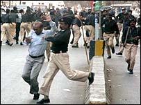 پاکستان میں ایمرجنسی کے نفاذ،ججوں کی معطلی اورگرفتاریوں کے خلاف پاکستان بھر کے وکلاء نے مزید تین روز تک عدالتی کارروائی کا بائیکاٹ کرنے کا اعلان کیا ہے جبکہ سیاسی جماعتوں نے دعوٰی کیا ہے کہ ان کے کارکنوں کی گرفتاریوں کا سلسلہ جاری ہے۔ کراچی میں وکلاء تنظیموں نے عدالتی کارروائی کا بائیکاٹ تیسرے روز بھی جاری رکھا جبکہ کوئٹہ میں وکلاء نمائندوں کے مطابق اب آئندہ سے روزانہ دس وکیل گرفتاری دیا کریں گے۔ بی بی سی کے نامہ نگار ریاض سہیل کے مطابق بائیکاٹ کے حوالے سے سندھ ہائی کورٹ میں وکلاء کی جنرل باڈی کا اجلاس منعقد ہوا ، جس میں میں آئندہ تین روز تک بائیکاٹ جاری رکھنے کا عزم کیا گیا اور بین الاقوامی برادری سے مطالبہ کیا گیا کہ وہ صدر مشرف پر دباؤ ڈالیں کہ وہ ایمرجنسی ختم کریں۔ ہائی کورٹ بار کے سابق صدر اختر حسین نے بی بی سی کو بتایا کہ وکلاء آئندہ تین روز تک عدالتی کارروائی کا بائیکاٹ جاری رکھیں گے اور اتوار کو مزید لائحہ عمل طئے کیا جائےگا۔ انہوں نے بتایا کہ جنرل باڈی نے مطالبہ کیا ہے کہ ایمرجنسی کا نفاذ واپس لیا جائے ، دو نومبر کو جو صورتحال تھی اسے بحال کیا جائے اور وکلا، سول سوسائٹی کے کارکنوں کی گرفتاری کے احکامات کو حکومت واپس لے۔ وکلاء کی یکجہتی کمزور پڑنے کے بارے میں اختر حسین کا کہنا تھا کہ جسٹس افتخار محمد چودھری کی معطلی کے وقت ججوں اور وکلاء ایک مقصد کے لیے ایک ہی موقف پر قائم تھے، میڈیا آزاد تھا اور وکلاء کا پیغام لوگوں تک پہنچ رہا تھا مگر موجودہ وقت مکمل طور پر بلیک آؤٹ ہے۔ انہوں نے کہا کہ میڈیا پر پابندی کی وجہ سے وکلاء کا لوگوں سے رابطہ کٹ گیا ہے، تمام اہم عہدیدار گرفتار ہیں اور جو بچ گئے ہیں وہ روپوش ہیں۔
