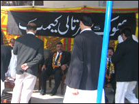 پشاور ہائی کورٹ کی عمارت کے اندر وکلاء نے پولیس کی سخت سکیورٹی میں ایک جلسہ کیا جس میں پاکستان بھر میں وکلاء کی گرفتاریوں کی سخت الفاظ میں مذمت کی گئی۔ اس کے علاوہ پشاور ہائی کورٹ کی عمارت کے اندر ایک بھوک ہڑتال کیمپ بھی لگایا گیا ہے جو صبح سے لیکر عدالتوں کا وقت ختم ہونے تک جاری رہتا ہے۔ کیمپ میں ایک درجن کے قریب وکلاء موجود رہے۔ کیمپ کے اردگر اور ہائی کورٹ کے احاطے میں دیواروں پر بڑے بڑے بینرز لگائے گئے ہیں جس میں ’ جی ایچ کیواور پی سی او نامنظور نامنظور، عدلیہ کی آزادی تک جنگ رہے گی اور ہم نہیں مانتے ظلم کے ضابطے‘ جیسے نعرے درج تھے۔ پشاور ہائی کورٹ کے اندر اور باہر گزشتہ دنوں کے مقابلے میں آج سخت حفاظتی اقدامات کیے گئے تھے۔ ہائی کورٹ کے برامدے اور عدالتوں کے دروازوں پر پولیس کے اہلکار بڑی تعداد میں موجود تھے جبکہ ہائی کورٹ کی عمارت کے باہر بھی بھاری نفری تعینات تھی۔ ادھر جماعت اسلامی نے جمعرات کو پشاور میں ایک احتجاجی مظاہرہ منعقد کرنے کا اعلان کیا ہے۔ مظاہرہ صوبائی رہنماؤں کی قیادت میں منعقد ہوگا۔ |